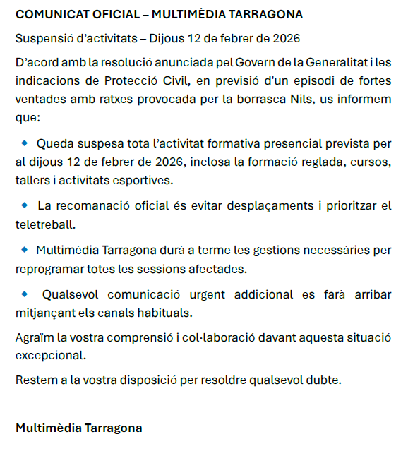 -Carrer Joana Jugan 2, TarragonaMULTIMÈDIA FORMACIÓ